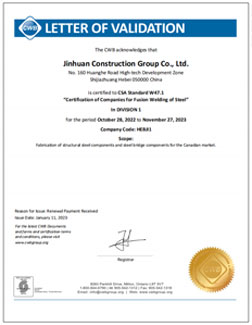 Jinhuan Steel Structure Engineering Co., Ltd. is a group enterprise integrating steel structure design, fabrication, and construction. Jinhuan operates four steel structure production bases, a general contracting business center in Beijing and a steel structure design center in Shanghai. With an annual production capacity of 200,000 tons of steel structures and a construction output value of 550 billion USD, Jinhuan ranks among the leading enterprises in the industry.