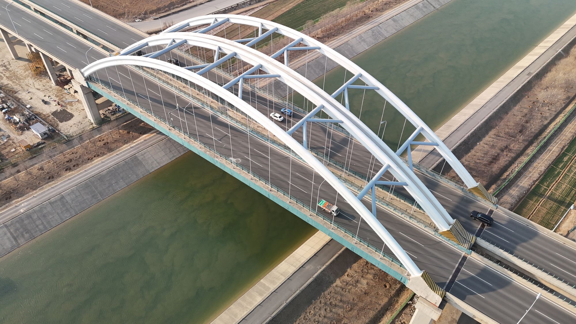 The South Second Ring Road West Extension Bridge over the South-to-North Water Diversion Project is a major municipal bridge featuring a steel–concrete composite arch structure, designed to meet high requirements for strength, durability, and structural efficiency.