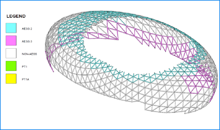 Challenge 2 – High Exposure Level The arena’s high-end design required exceptional aesthetic quality. According to design specifications, 15% of the roof steel structure is exposed to AESS 3 standards, and 38% to AESS 2. This demanded high-quality raw materials, superior welding techniques, and meticulous surface finishing to achieve smooth, flawless surfaces.